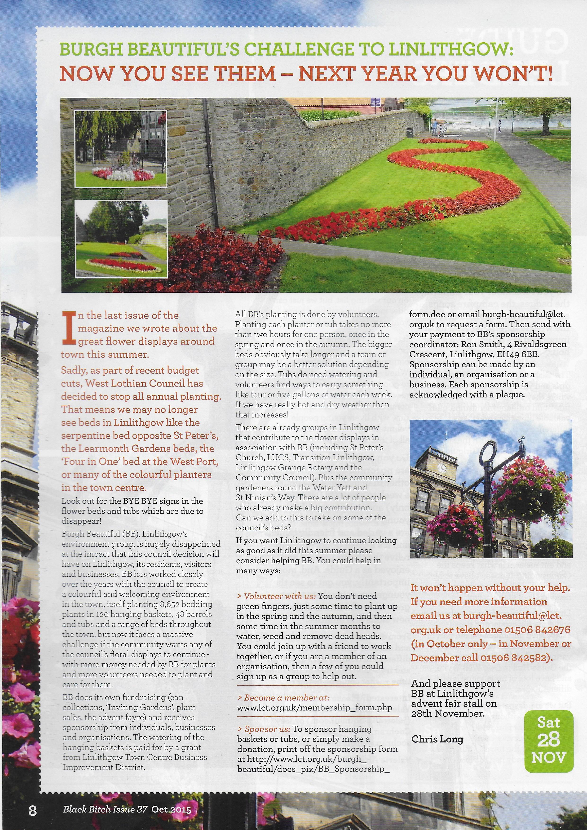 Image LibraryThese images relate to the work of Linlithgow Burgh Trust, which includes Linlithgow Civic Trust and Burgh Beautiful Linlithgow.See Linlithgow Burgh Trust Website for more information on the Trust. More images will be added to this collection when they become available.
